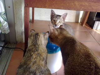 Thank you Bobby and Aunty Megaa for the wonderful early Christmas presents ... we love the water fountain, litter kwitter (which we haven't quite figured out yet) and for the automatic feeder (our life saver when mom needs to go on her outstation trips!)
